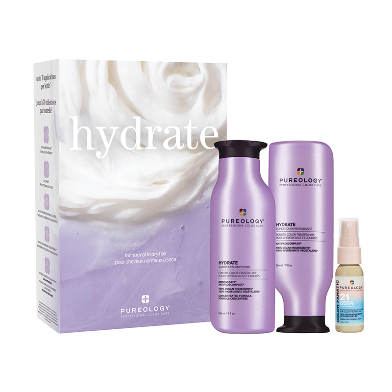Le revitalisant Hydrate de Pureology hydrate en profondeur les cheveux colorés moyens à épais grâce à ses ingrédients clés dont le jojoba le thé vert et la sauge. De plus il bénéficie d'un mélange d'aromathérapie à base de menthe menthol et notes vertes.